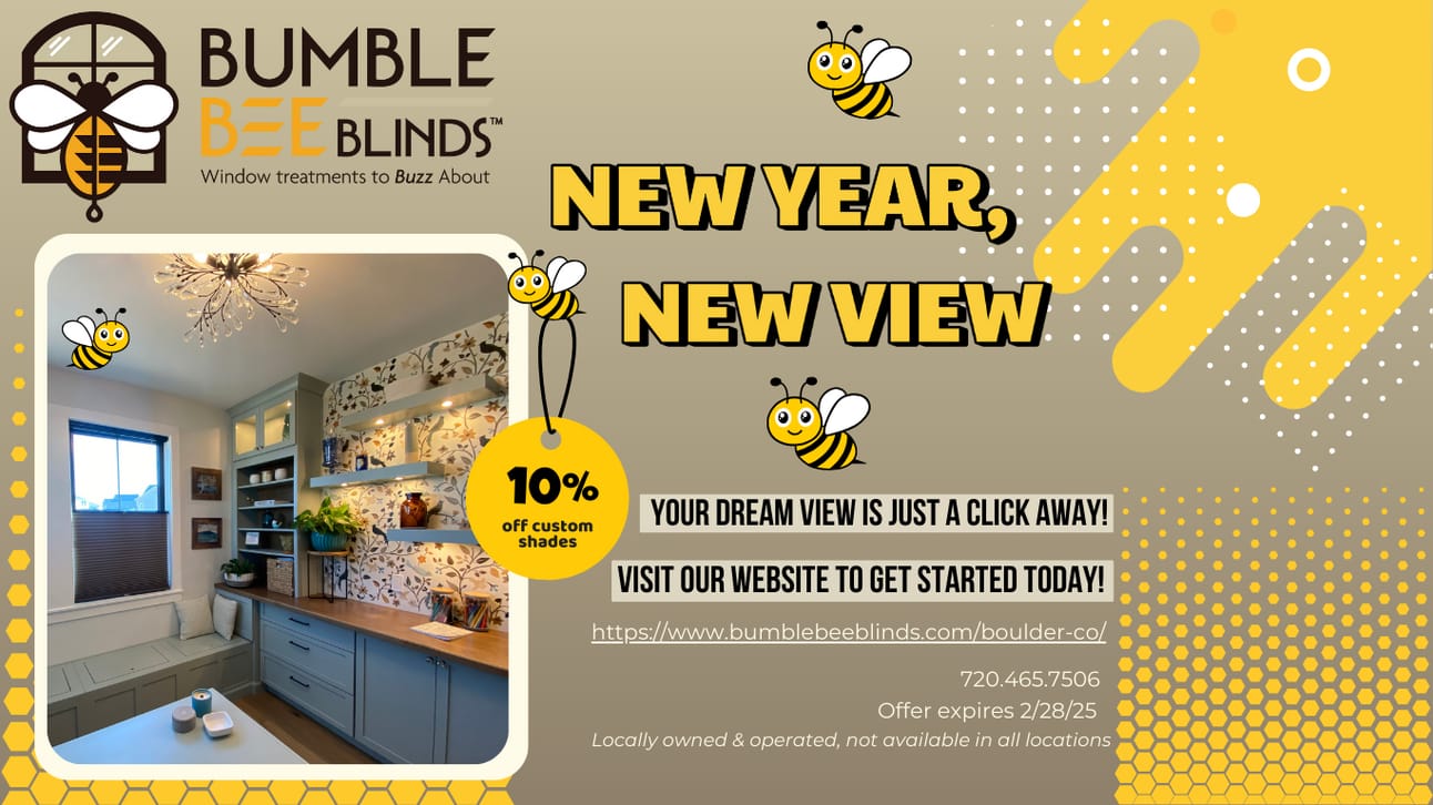 Bumble Bee Blinds of Boulder is kicking off the year with a sweet deal for all new clients: 10% off all custom shades during the month of February! Whether your clients are interested in energy-efficient honeycomb cellular shades or sleek roller shades, we've got them covered.